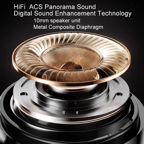 2. Sonido panorámico HiFi ACS, tecnología de mejora del sonido digital, unidad de altavoz de 10 mm, diafragma compuesto de metal