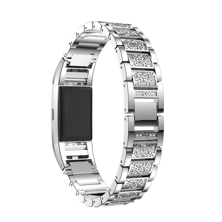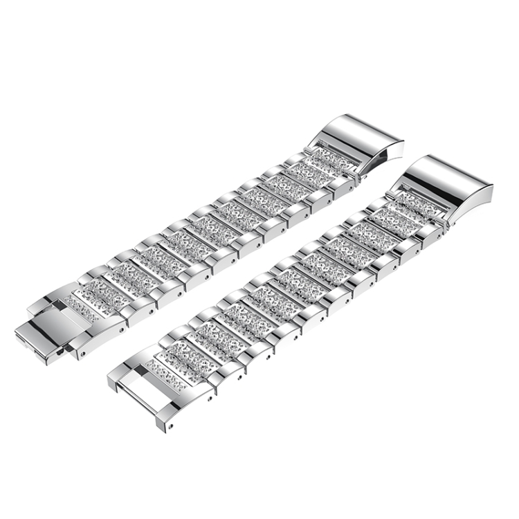 Banda de reloj de acero inoxidable sólido con tachuelas de diamante para Fitbit Charge 2 (plata)