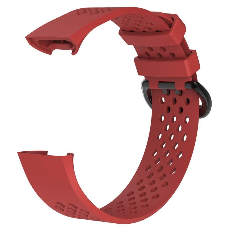 Banda de Reloj Deportivo Ajustable con Agujeros Cuadrados para Fitbit Charge 3 (Rojo)