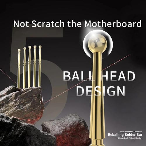 La Barra de Soldadura Reballing con Conector FPC chapado en Oro SC96 (2U) es una herramienta especializada diseñada para procesos de reparación electrónica, especialmente en la soldadura de Placas Base de dispositivos Móviles. Fabricada en cobre puro con un baño de oro, esta barra garantiza una conductividad óptima y propiedades antioxidantes que aseguran la calidad y durabilidad de las soldaduras. Su diseño incluye una cabeza esférica que protege la Placa Base durante el proceso de soldadura, minimizando riesgos de daños. Compatible con diversos modelos de Teléfonos, esta barra es ideal para usuarios que reparan por cuenta propia o profesionales técnicos que requieren precisión y fiabilidad en tareas de reballing y soldadura de Conectores FPC.