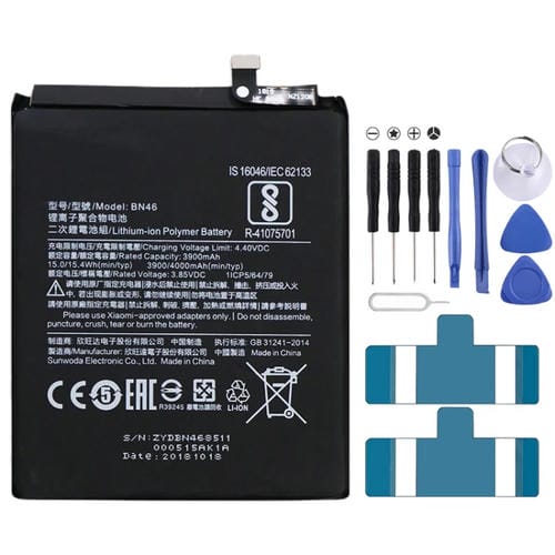 • 1x Batería de polímero de litio BN46 3900mAh para Xiaomi Redmi 7 / Redmi Note 6 (2021)