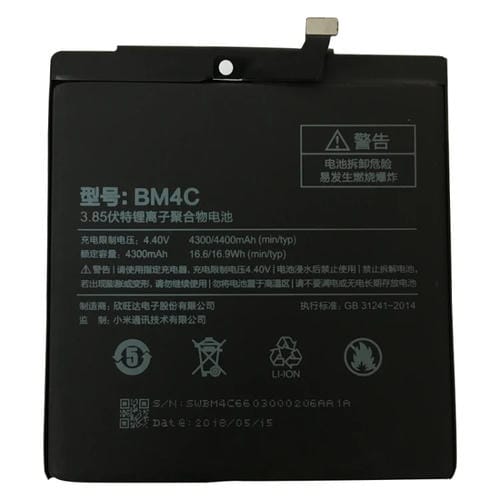 La Batería Xiaomi Mi Mix BM4C 4300mAh (2023) es una Batería de polímero de litio diseñada específicamente para el modelo Xiaomi Mi Mix. Su función principal es proporcionar una fuente de energía confiable y continua para el dispositivo, manteniendo un rendimiento óptimo tanto en tiempo de espera como en duración de llamada. Esta Batería es compatible exclusivamente con el Xiaomi Mi Mix, ofreciendo una alternativa adecuada para reemplazos o reparaciones que requieren restaurar la autonomía Original del equipo. Su tecnología de iones de litio evita el efecto memoria común en Baterías de níquel-cadmio, garantizando una vida útil prolongada y estable. Se recomienda almacenar la Batería en un lugar fresco y seco cuando no se utilice por períodos prolongados, realizando Cargas periódicas cada tres meses para preservar su capacidad.
