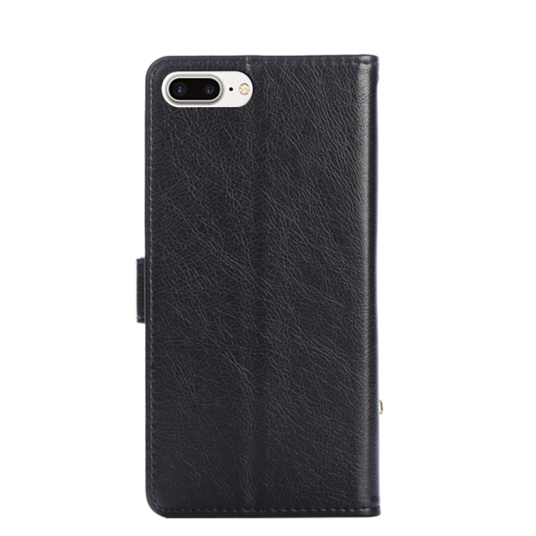 Bolsa de Cremallera PU + TPU Funda de Cuero Flip Horizontal con Soporte Ranura Tarjeta Billetera Cordón iPhone 7 Plus (Negro)