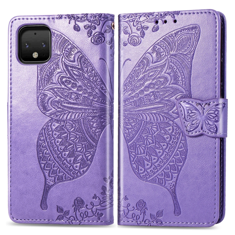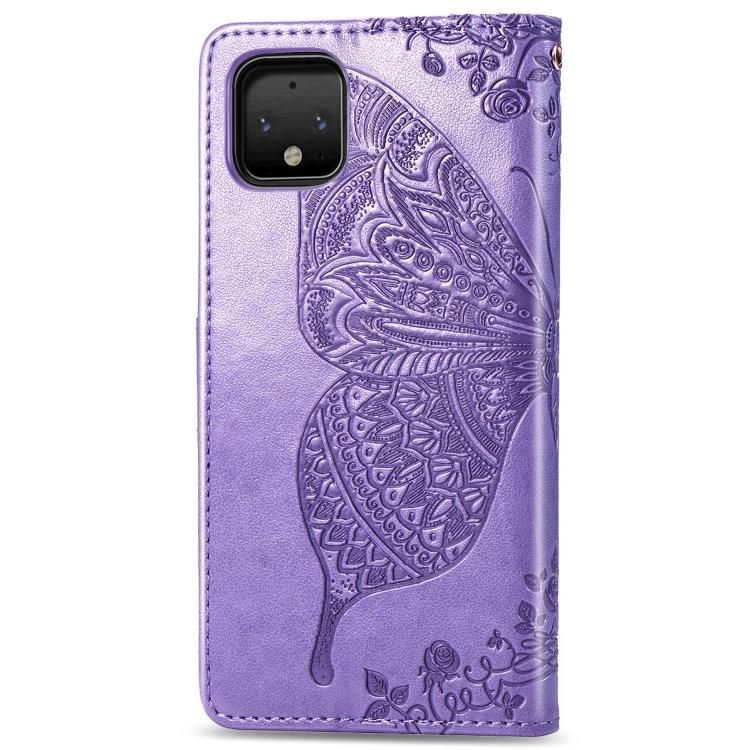 Funda de Cuero Butterfly Love Flowers para Google Pixel 4 XL con Soporte, Ranuras y Billetera (Light Purple)