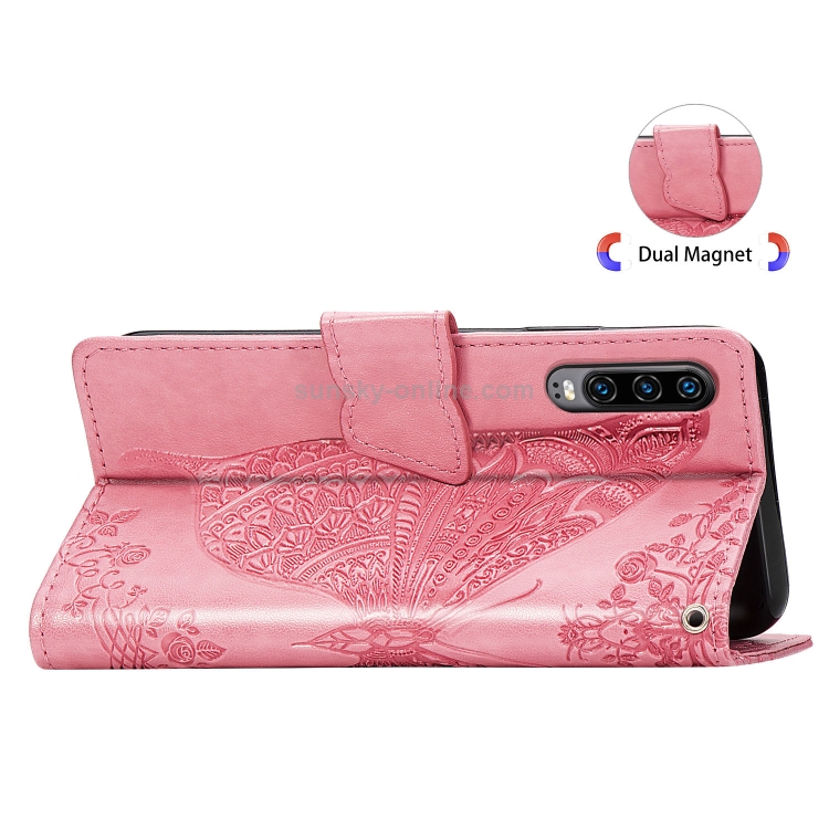 Funda de Cuero Butterfly Love Flowers para Huawei P30 con Tapa Horizontal, Soporte, Ranuras para Tarjetas, Billetera y Cordón