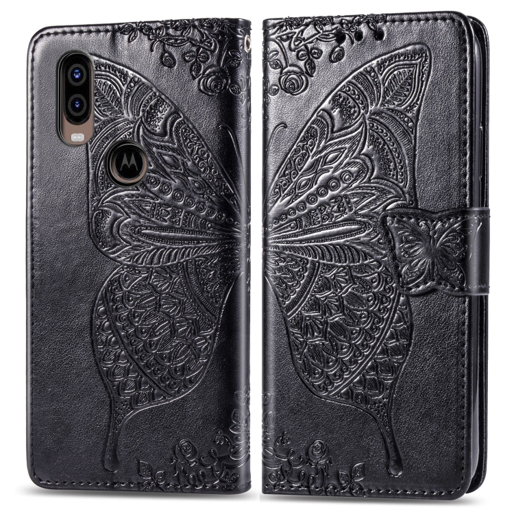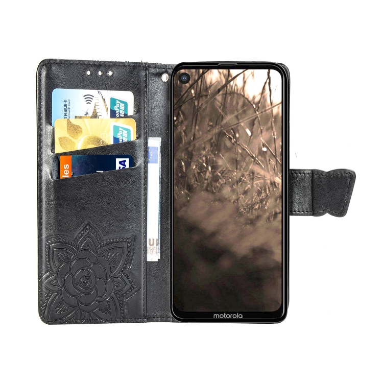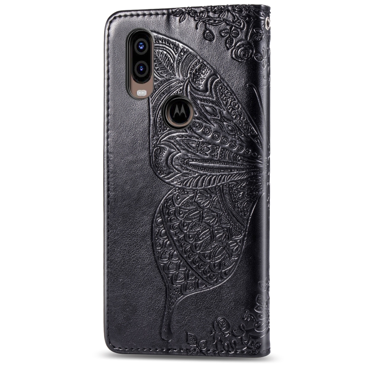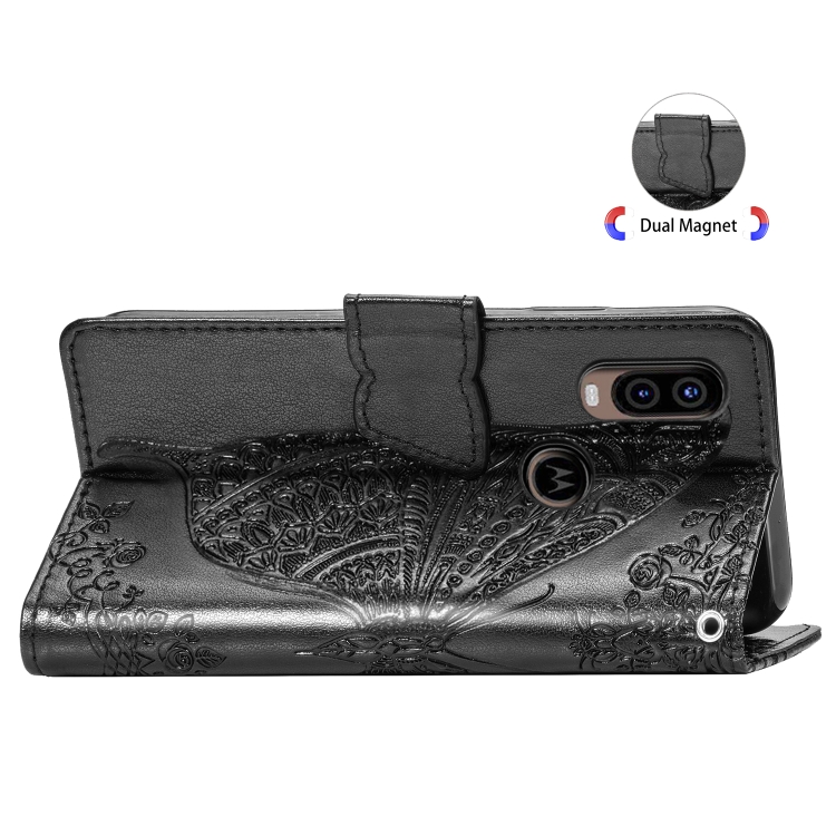 Funda de Cuero Butterfly Love Flowers para Motorola P40 con Tapa Horizontal, Soporte, Ranuras para Tarjetas y Cordón
