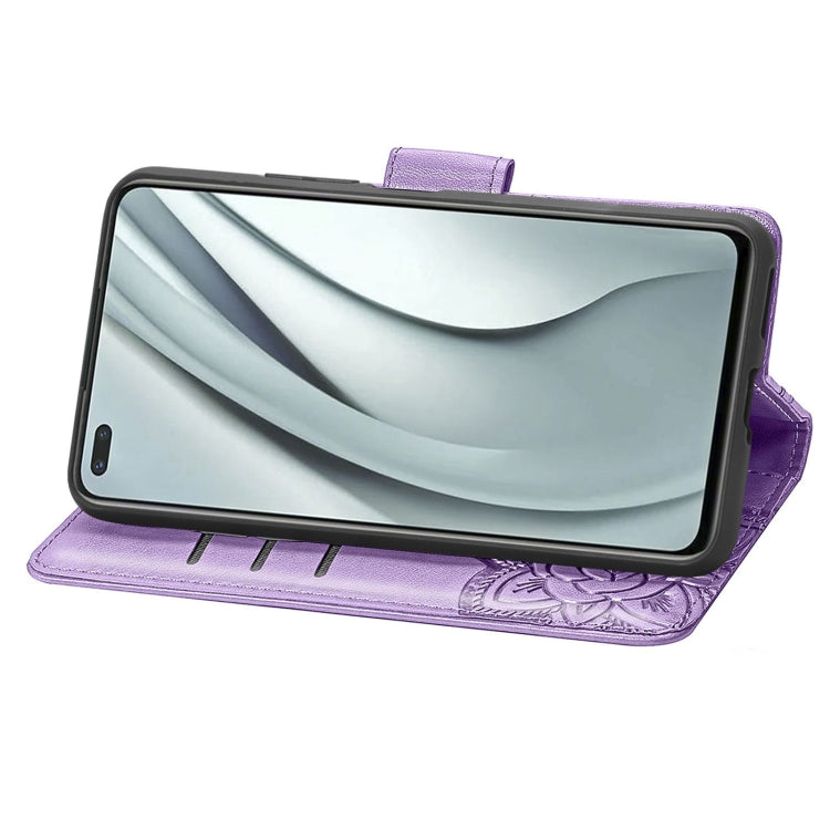 Funda de Cuero Butterfly Love Flowers con Soporte Ranuras y Cordón para Infinix Nota 8 (Luz Púrpura)