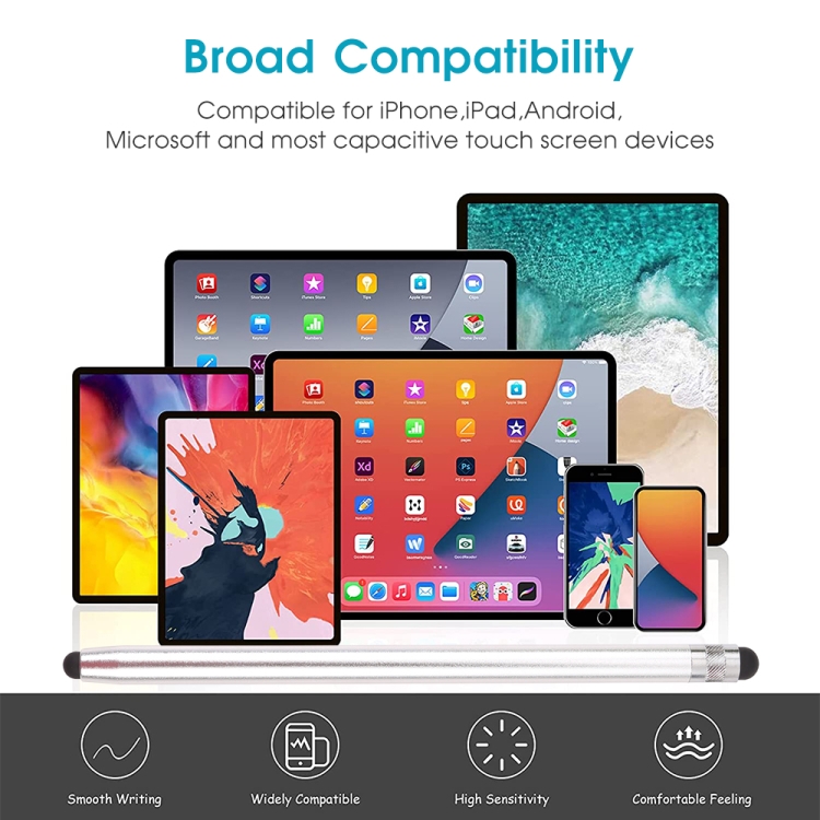 Este accesorio es compatible con la mayoría de tabletas inteligentes y Teléfonos inteligentes que utilizan Pantallas Táctiles capacitivas. -