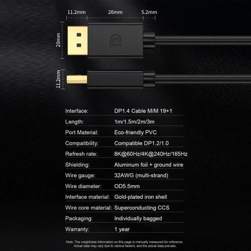 4. Estándar DP1.4 mejorado: Totalmente compatible con la especificación DP1.4, ofreciendo un mayor ancho de banda y una imagen nítida.
