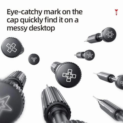 - Torque ajustado a 0,35 kgf/cm con manguito de torsión de suspensión que evita daños por sobreesfuerzo; punta 3D de desarrollo propio para ajuste preciso; cinco modelos adaptados a diferentes tipos de tornillos pequeños