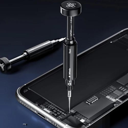 El Destornillador 3D de torsión magnético de acero S2 Qianli iWhale 5 en 1 es una herramienta especializada diseñada para la reparación precisa de dispositivos electrónicos, especialmente compatible con tornillos de Teléfonos Móviles Acer. Este destornillador cuenta con un sistema de manguito de torsión de suspensión propio que limita el torque a 0,35 kgf/cm, evitando daños por fuerza excesiva al tornillo. Está fabricado con aleación de aluminio 6061 de calidad aeronáutica y procesado mediante mecanizado CNC para garantizar alta precisión y durabilidad. Disponible en cinco modelos (A/B/C/D/E), cada uno con una punta específica (Phillips, Tripunto, Pentalobe, Cabeza de alfiler Phillips y Torx T2), satisface el 90% de las necesidades en tornillos pequeños para reparaciones profesionales.