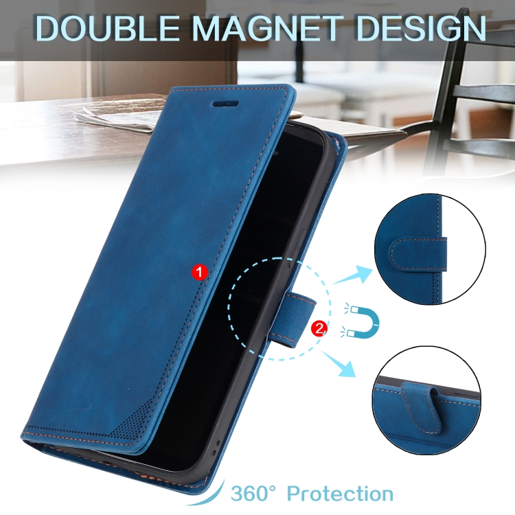 Caja de Cuero Anti-Robo para iPhone13 Pro (Azul)
