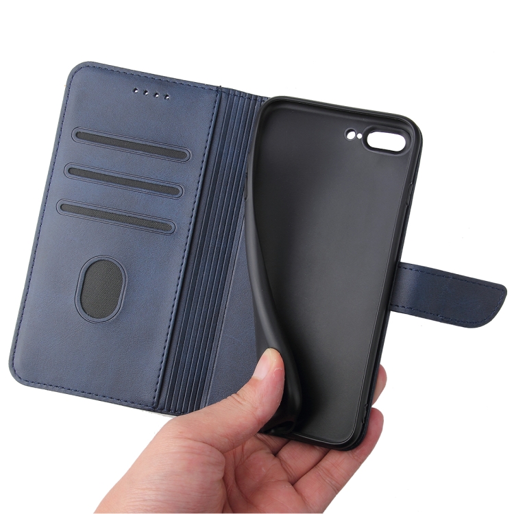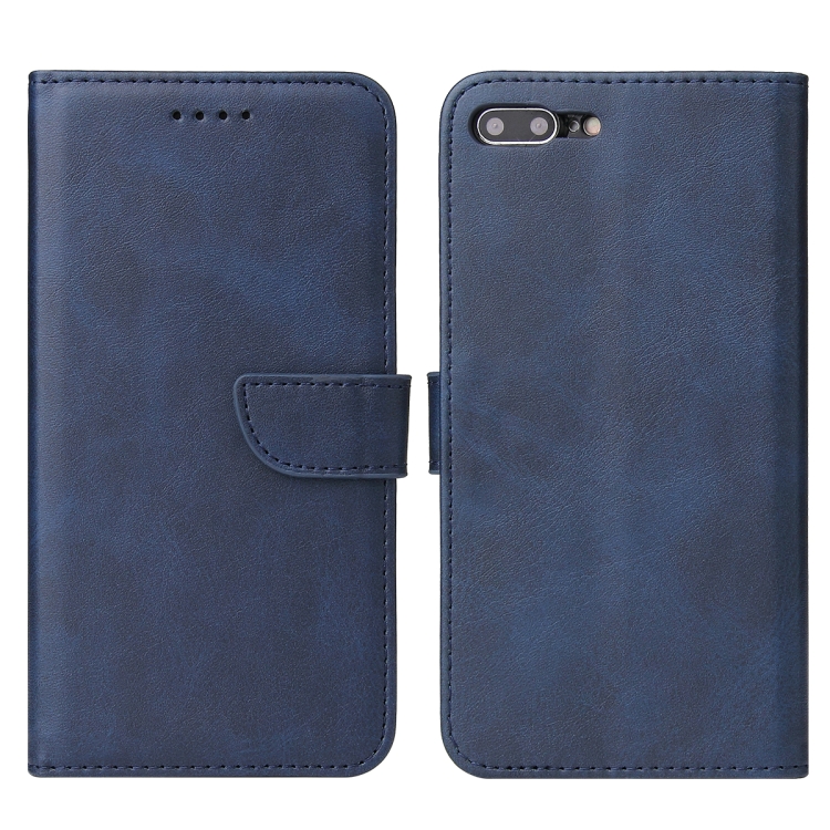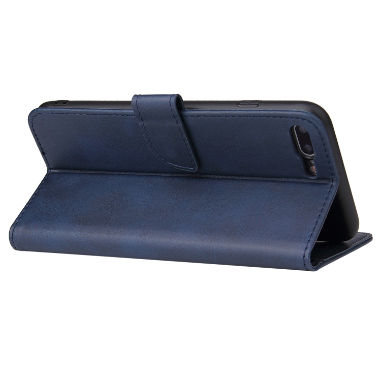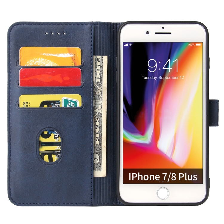 Caja de cuero horizontal hebilla textura pantorrilla soporte y tarjetero para iPhone 8 Plus y 7 Plus (Azul)