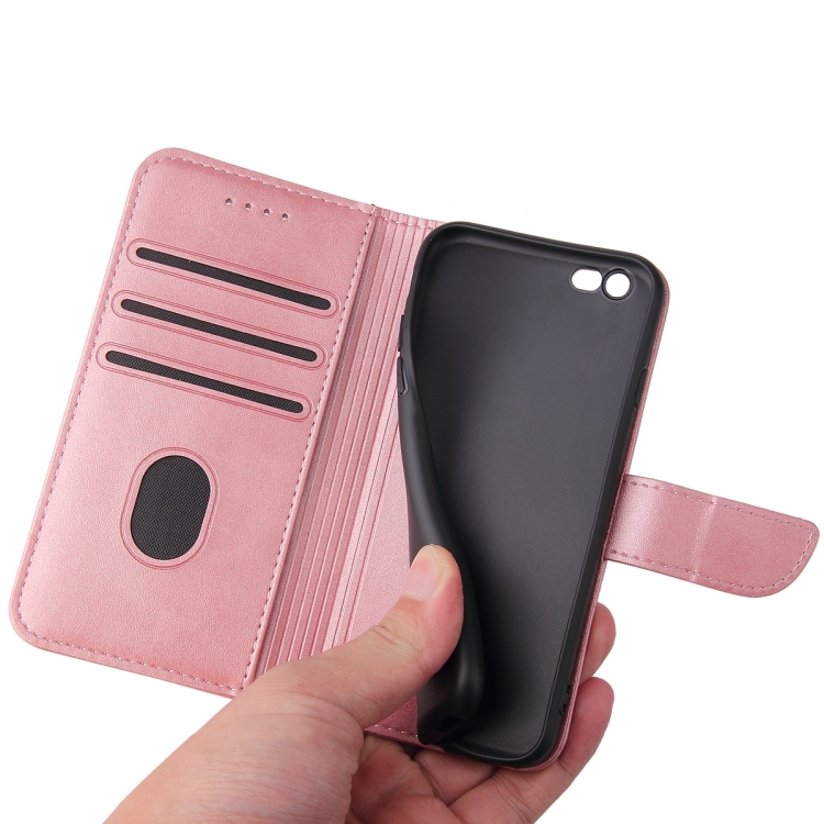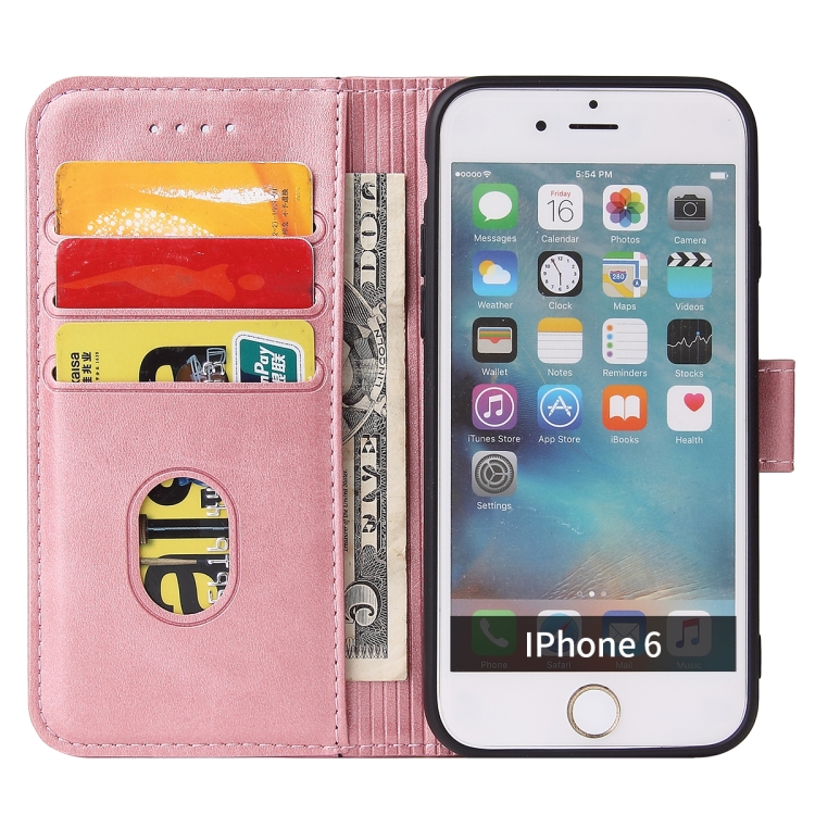 Caja de Cuero Horizontal Hebilla Textura Pantorrilla Soporte Tragamonedas Cartera para iPhone 6 y 6S (Oro Rosa)