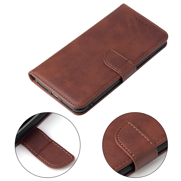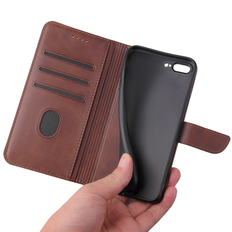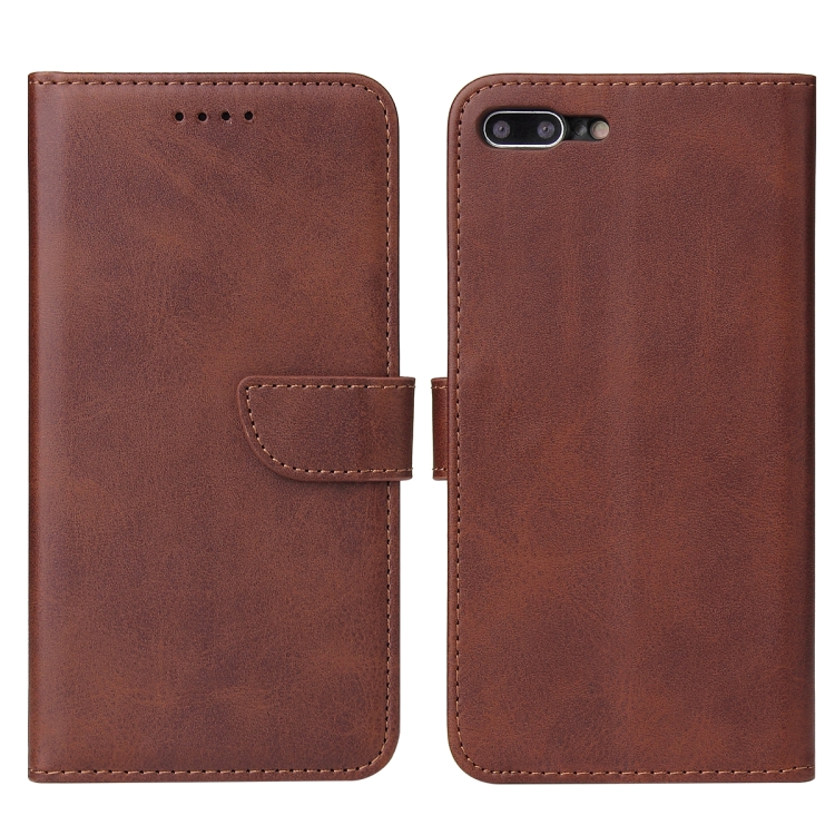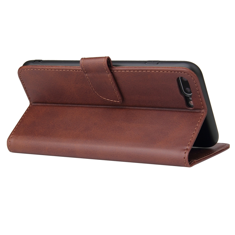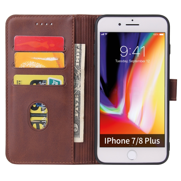 Caja de Cuero Horizontal con Hebilla Textura Becerro Soporte Tragamonedas Cartera para iPhone 8 Plus y 7 Plus (Brown)