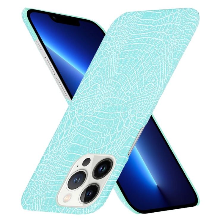 Caja de Telefonía PU + PC de Cocodrilo para iPhone 13 Pro (Verde Claro)