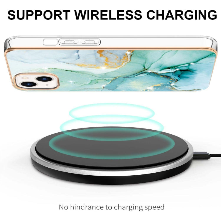 Caja del Teléfono a Prueba de Golpes Imd TPU Doble Cara Patrón Mármol Galvanizado para iPhone 15 (Verde)