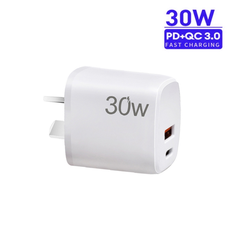 - 1x Cargador USB PD 30W USB-C + QC 3.0 con Cable USB a Micro USB 1 m (Blanco) Enchufe AU