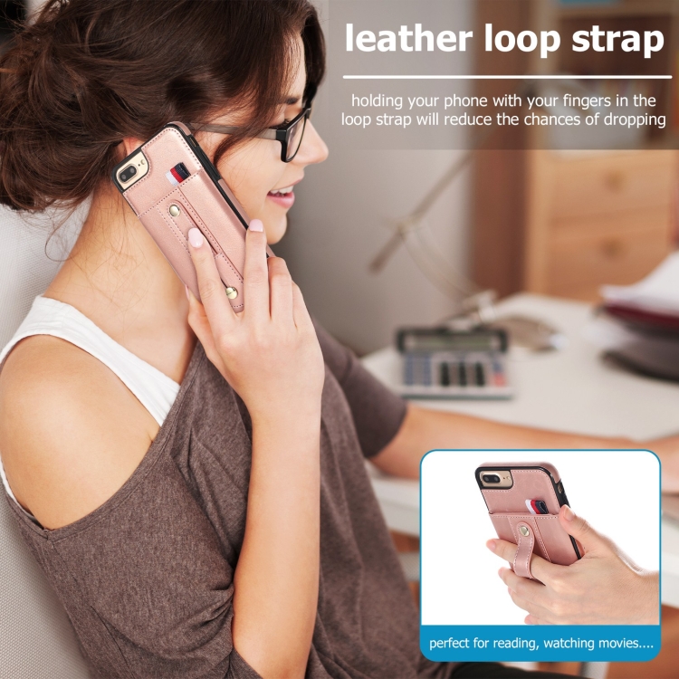 Case de Teléfono de Cuero Billetera Pulsera para iPhone 7 Plus / 8 Plus (Oro Rosa)