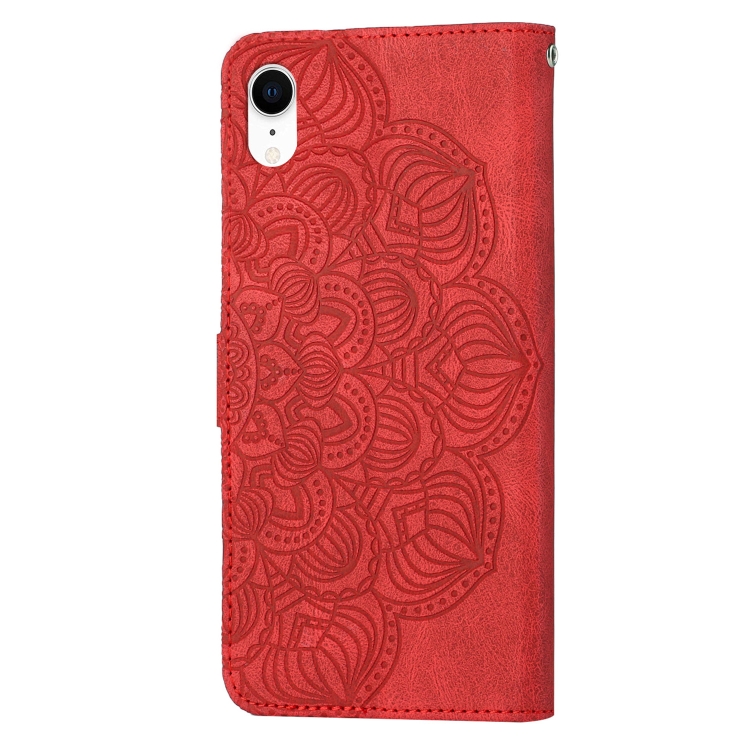 Case de Teléfono de Cuero Flip En Relieve Mandala para iPhone Xr (Rojo)
