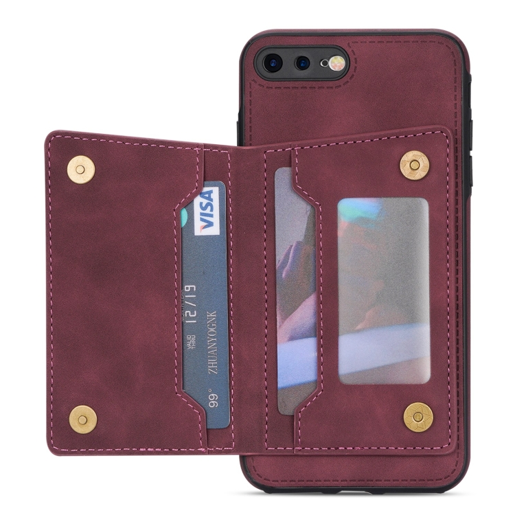 Case de Teléfono soporte de tarjeta para iPhone 8 Plus / 7 Plus (Rojo Vino)