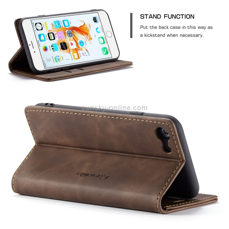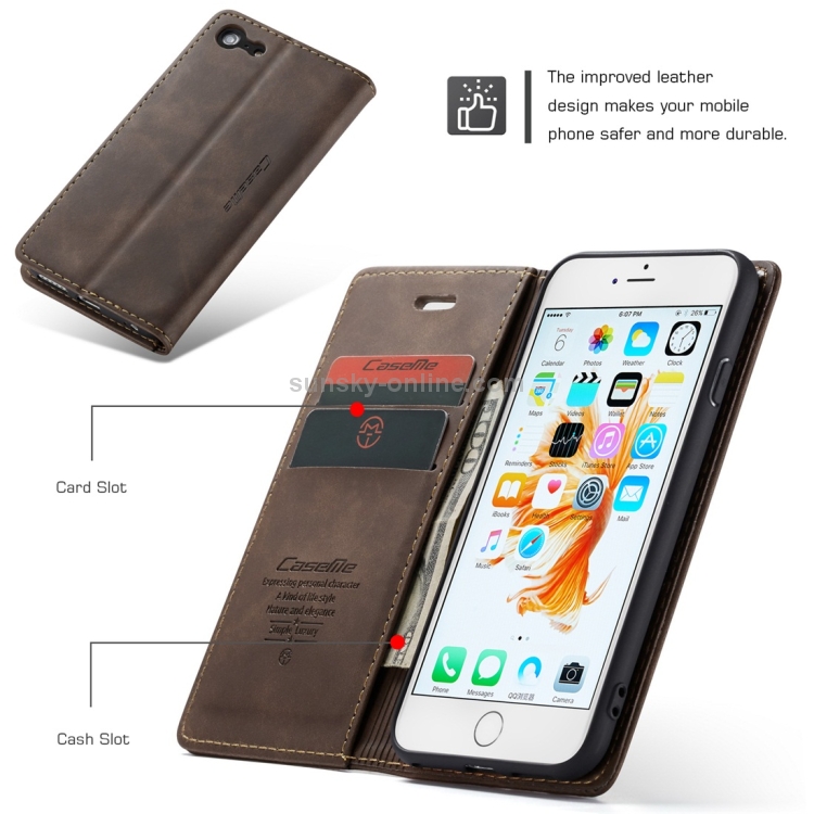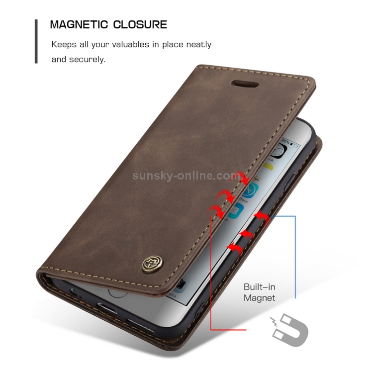 Estuche Multifuncional Caseme-013 para iPhone 6 / 6S Cuero Abatible Horizontal Retro Esmerilado (Café)