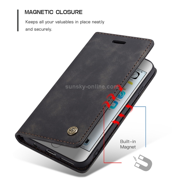 Estuche Multifuncional Caseme-013 de Cuero con Tapa Horizontal para iPhone 6 / 6S, Ranura Tarjeta, Soporte y Billetera (Negro)