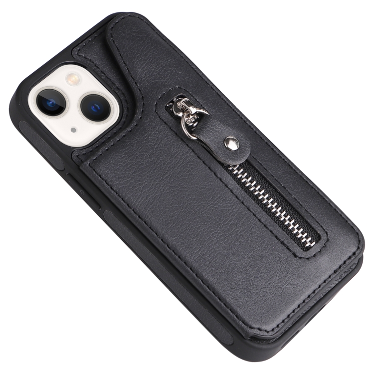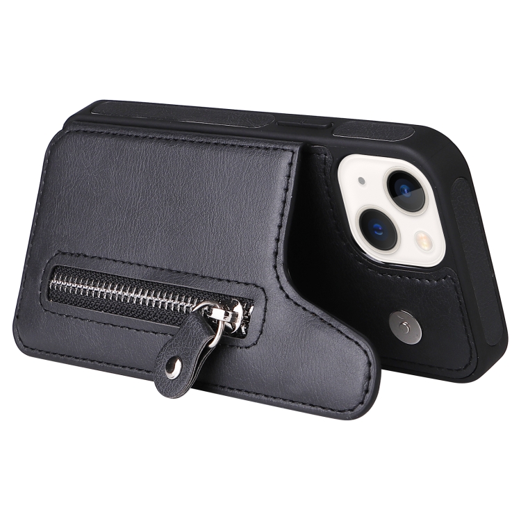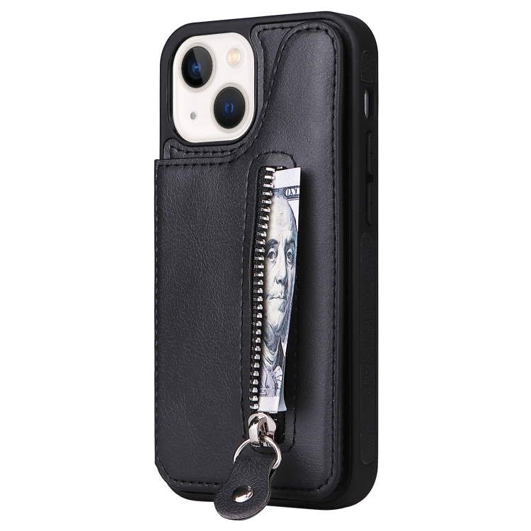 Funda para iPhone 13 Mini Doble Hebilla con Cremallera (Negro)