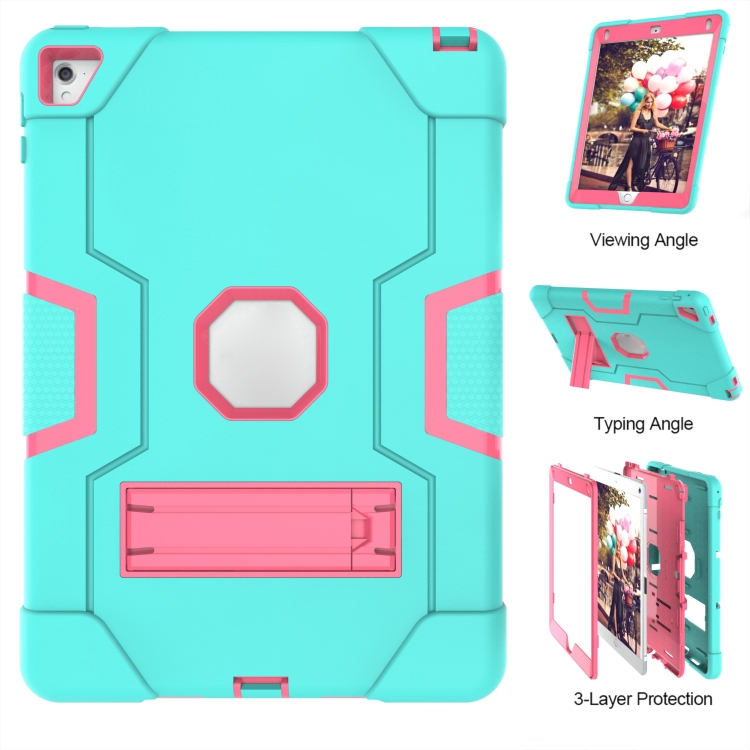 Funda Tablet Silicone + PC Robot Contraste Color para iPad 6 / iPad Pro 9.7 (2016) (Verde Menta + Rosa Roja)