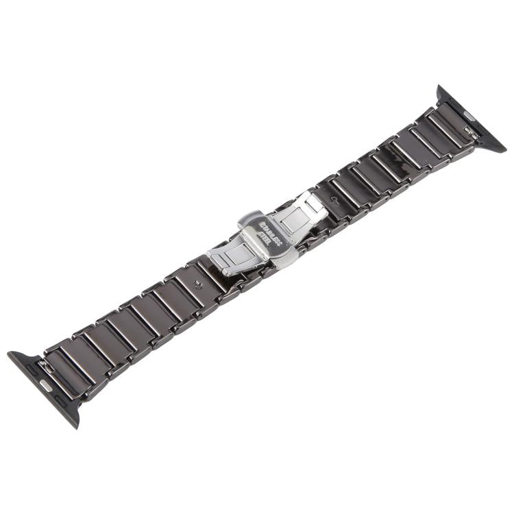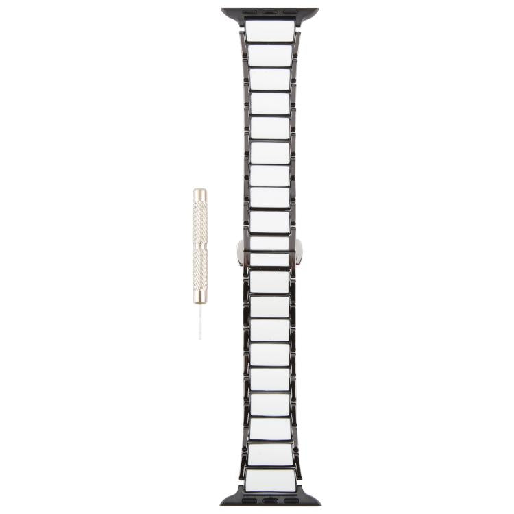 Correa de acero de 18 mm con tres cuentas de cerámica para Apple Watch de 42 mm, 41 mm, 40 mm y 38 mm (negro y blanco)