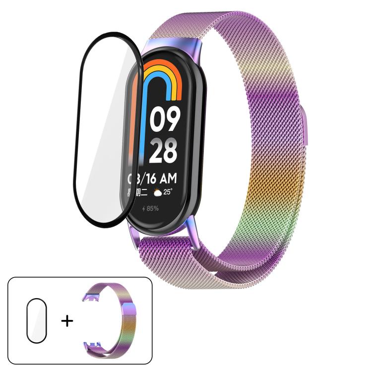 Correa de acero inoxidable milanesa con película curva 3D (colorida) para Xiaomi Smart Band 9/9 NFC