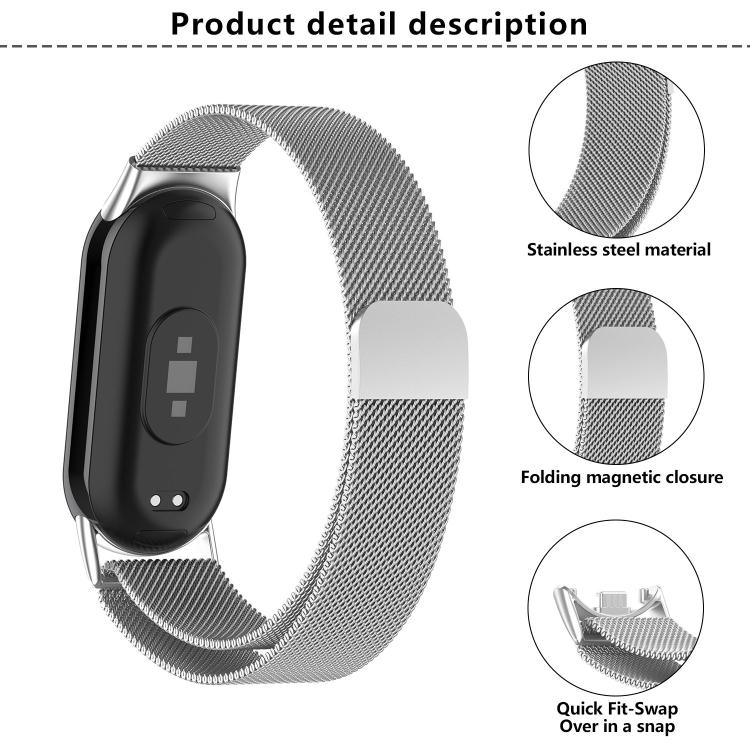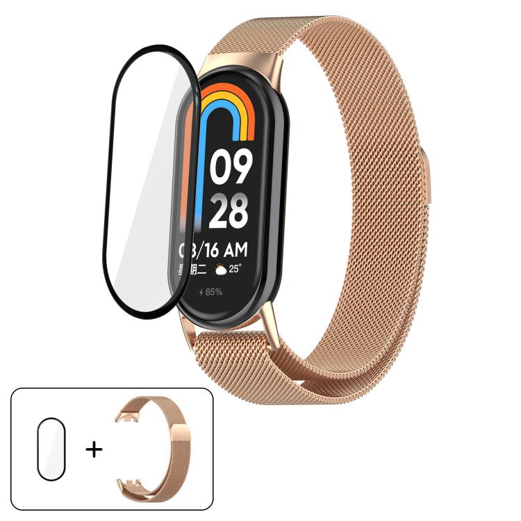 Correa de acero inoxidable milanesa con película curva 3D para Xiaomi Smart Band 9/9 NFC (oro rosa)