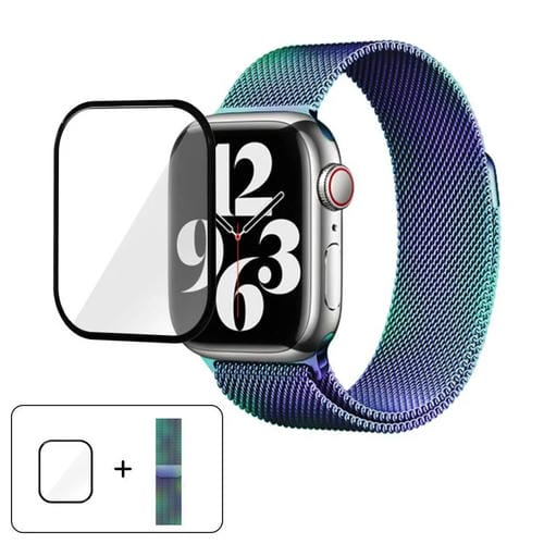 Correa de acero inoxidable milanesa para Apple Watch Series 41 mm con película curva 3D (colorida)