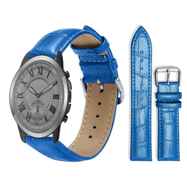 Correa de cuero con hebilla de pasador y textura de bambú de 24 mm para reloj híbrido Fossil Q Machine xDfind (azul)