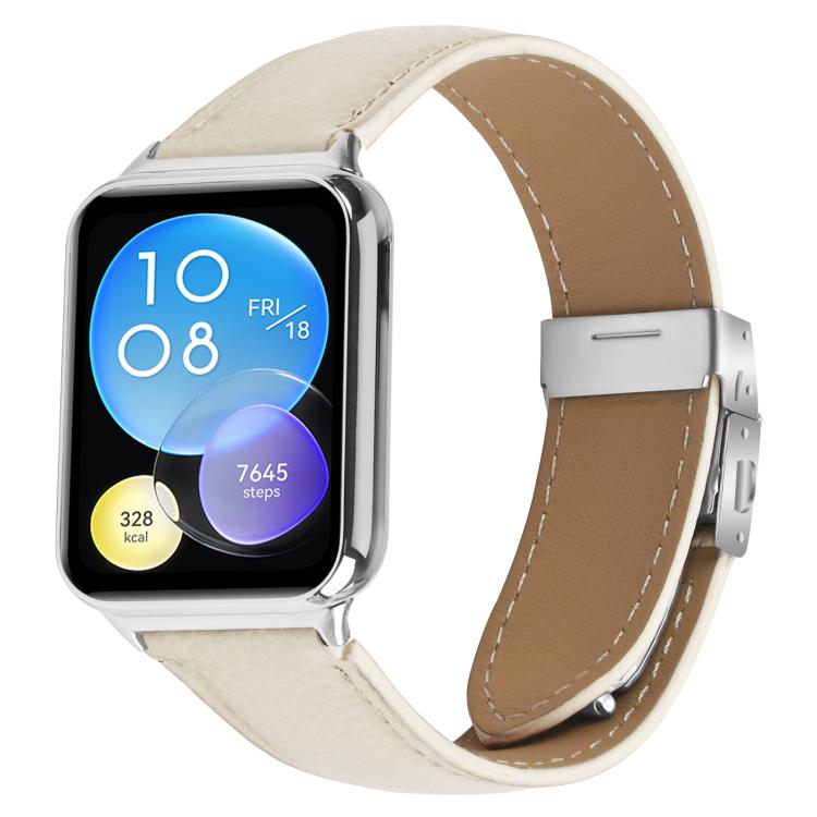 Correa de cuero con hebilla trasera de tortuga plateada con textura de lichi para Xiaomi Smart Band 9 Pro y Redmi Watch 5 (blanco cremoso)