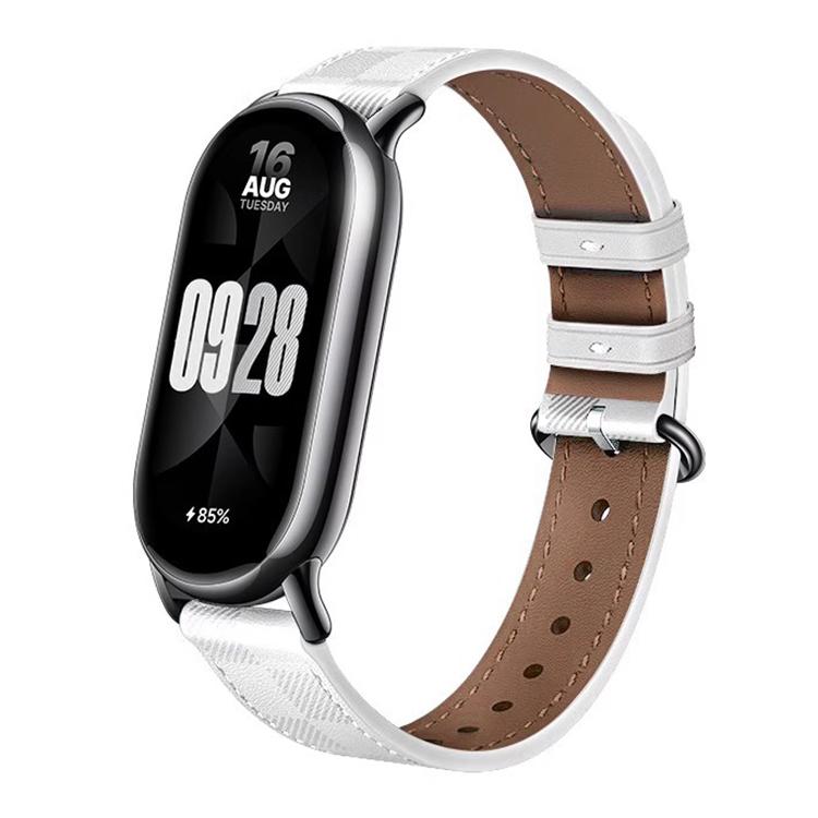 Correa de cuero con textura a cuadros xDfind para Xiaomi Smart Band 10/9/8 (blanca)