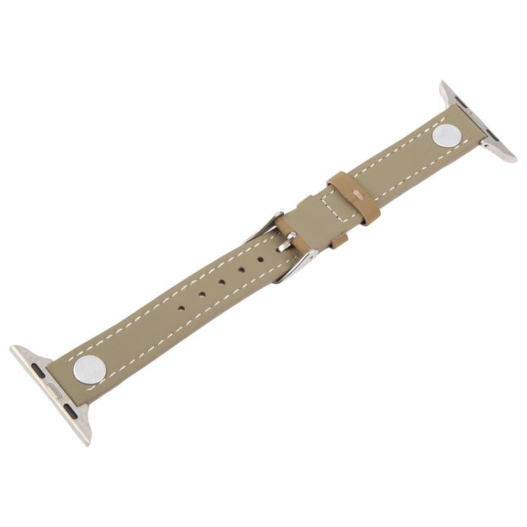 Correa de cuero de microfibra con remaches en color camelia para Apple Watch de 42 mm, 41 mm, 40 mm y 38 mm (gris topo)