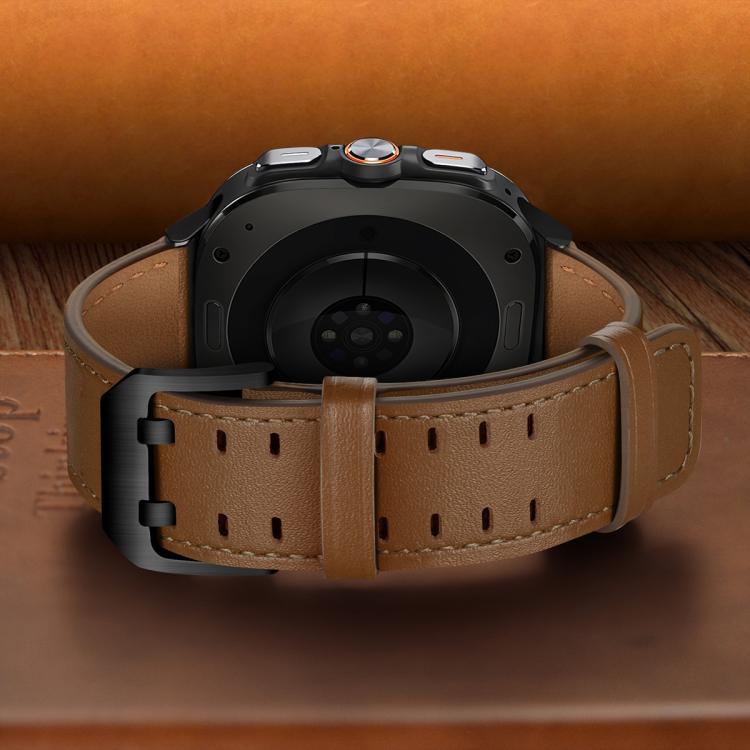Correa de cuero genuino con doble hebilla para Samsung Galaxy Watch8/Watch8 Classic (marrón)