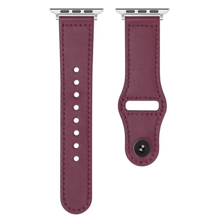 Correa de cuero genuino con hebilla inversa para Apple Watch de 42 mm, 41 mm, 40 mm y 38 mm (rojo vino)