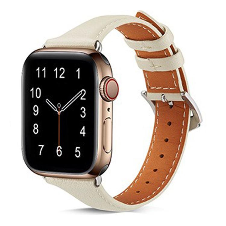 Correa de cuero genuino con hebilla pequeña para Apple Watch de 42 mm, 41 mm, 40 mm y 38 mm (blanco marfil)