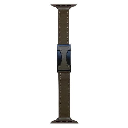 Correa de cuero genuino lisa de 14 mm con hebilla magnética para Apple Watch de 42 mm, 41 mm, 40 mm y 38 mm (marrón oscuro)