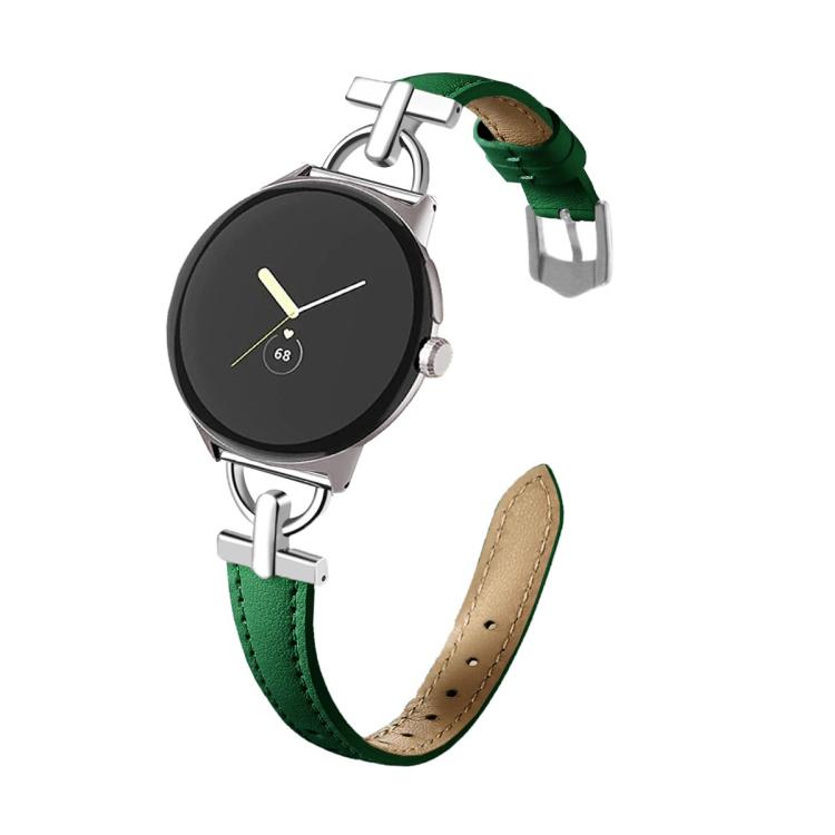 Correa de cuero metálica pequeña en forma de D de 41 mm para Google Pixel Watch 4 / 3 / 2 / 1 (verde)
