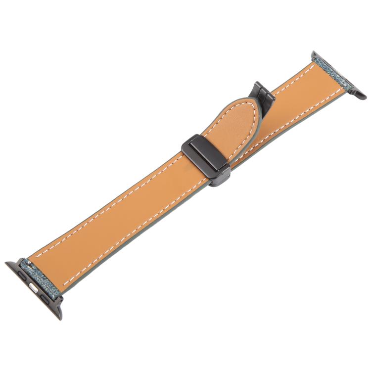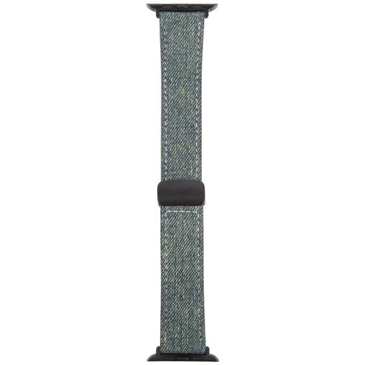 Correa de cuero vaquero con hebilla magnética plegable para Apple Watch de 46 mm, 49 mm, 45 mm y 44 mm (azul y gris)