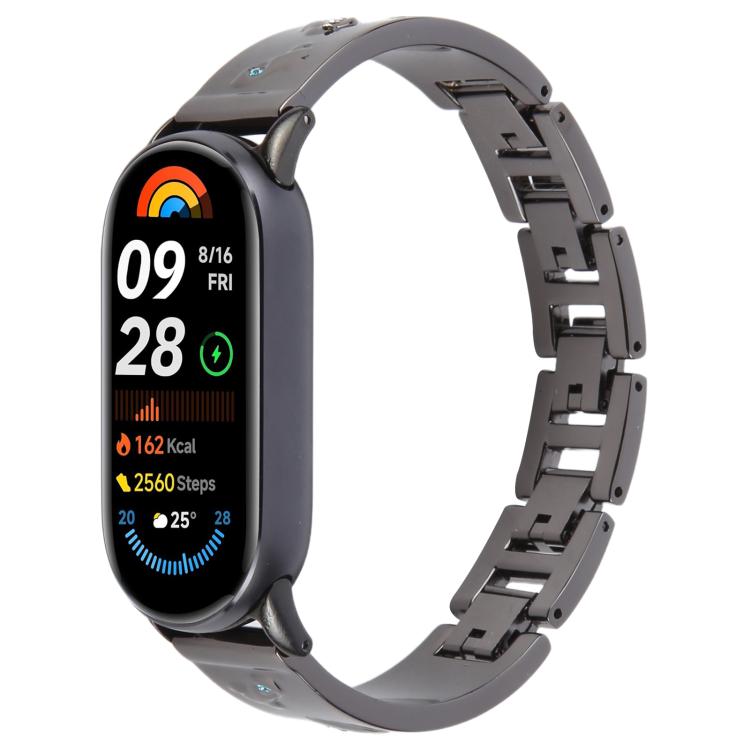 Correa de metal con cierre rápido de diamante para Xiaomi Smart Band 9/8 (negra)