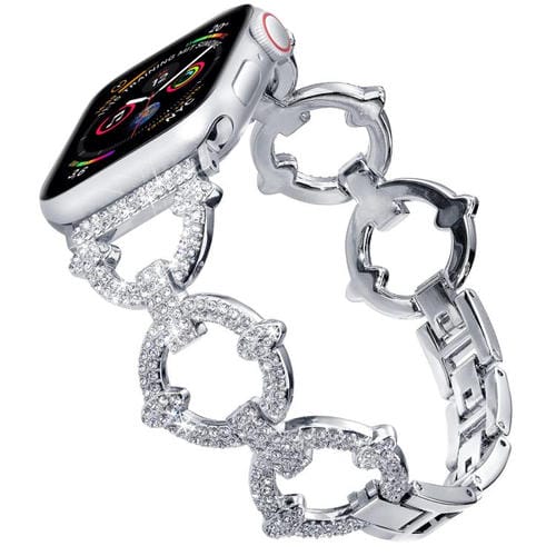 Correa de metal con diamantes en forma de O para Apple Watch de 42, 44, 45, 46 y 49 mm xDfind (plateada)