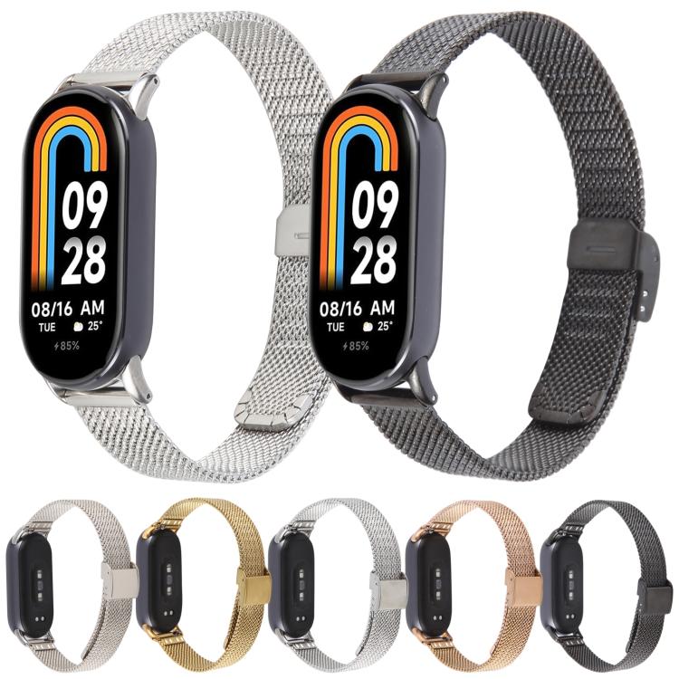 Correa de metal milanesa con hebilla integrada para Xiaomi Smart Band 9/8 (plateada)