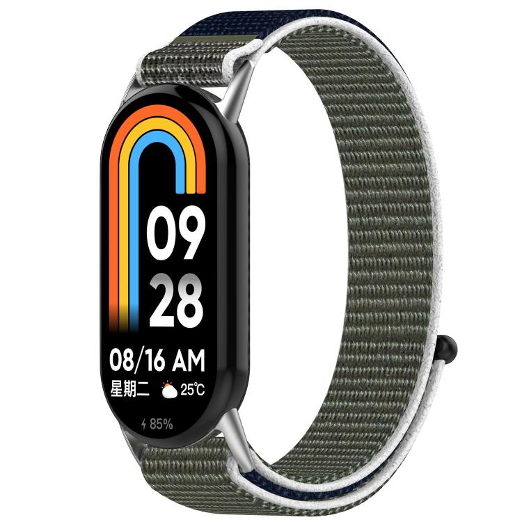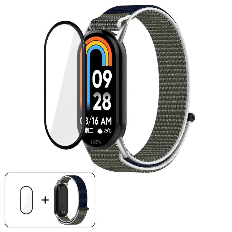 Correa de nailon con cierre de velcro y película curva 3D para Xiaomi Smart Band 9/9 NFC (gris y azul)
