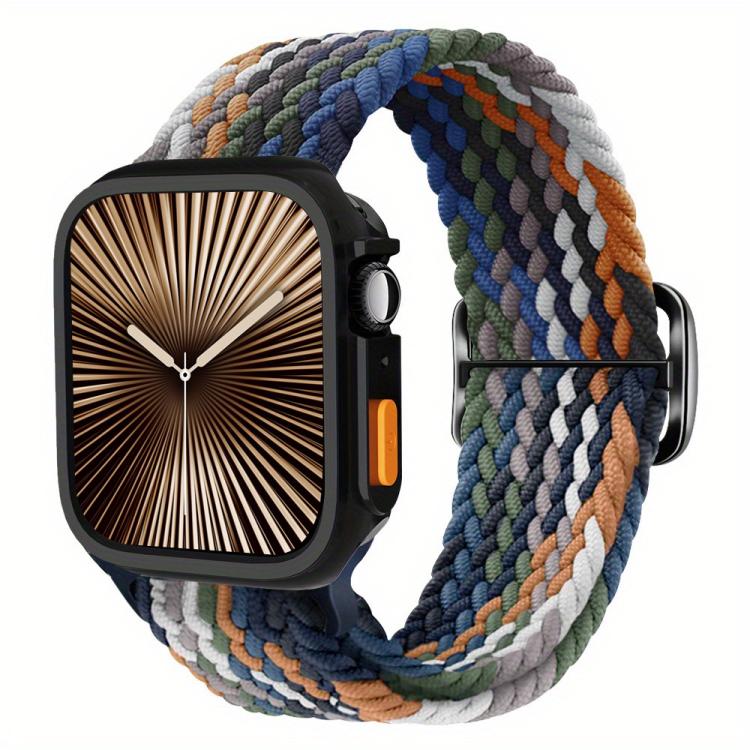 Correa de nailon con hebilla de escalera para Apple Watch Series 10/11 de 42 mm con funda de TPU (color denim)