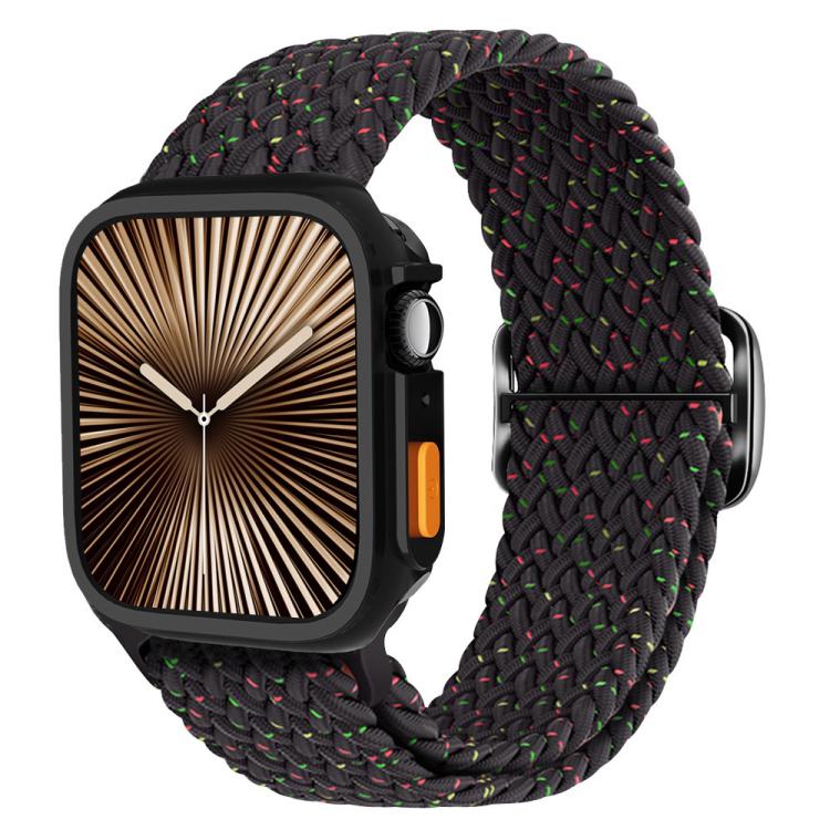 Correa de nailon con hebilla de escalera para Apple Watch Series 10/11 de 42 mm con funda de TPU (negro Starlight)