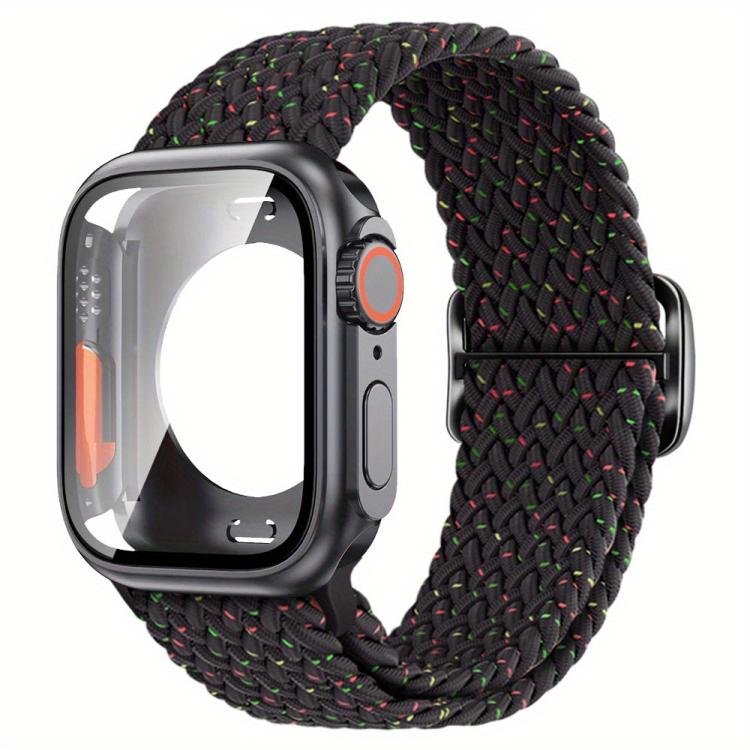Correa de nailon con hebilla de escalera para Apple Watch Series 41 mm, con funda de PC con película Ultra de 49 mm (negro Starlight)